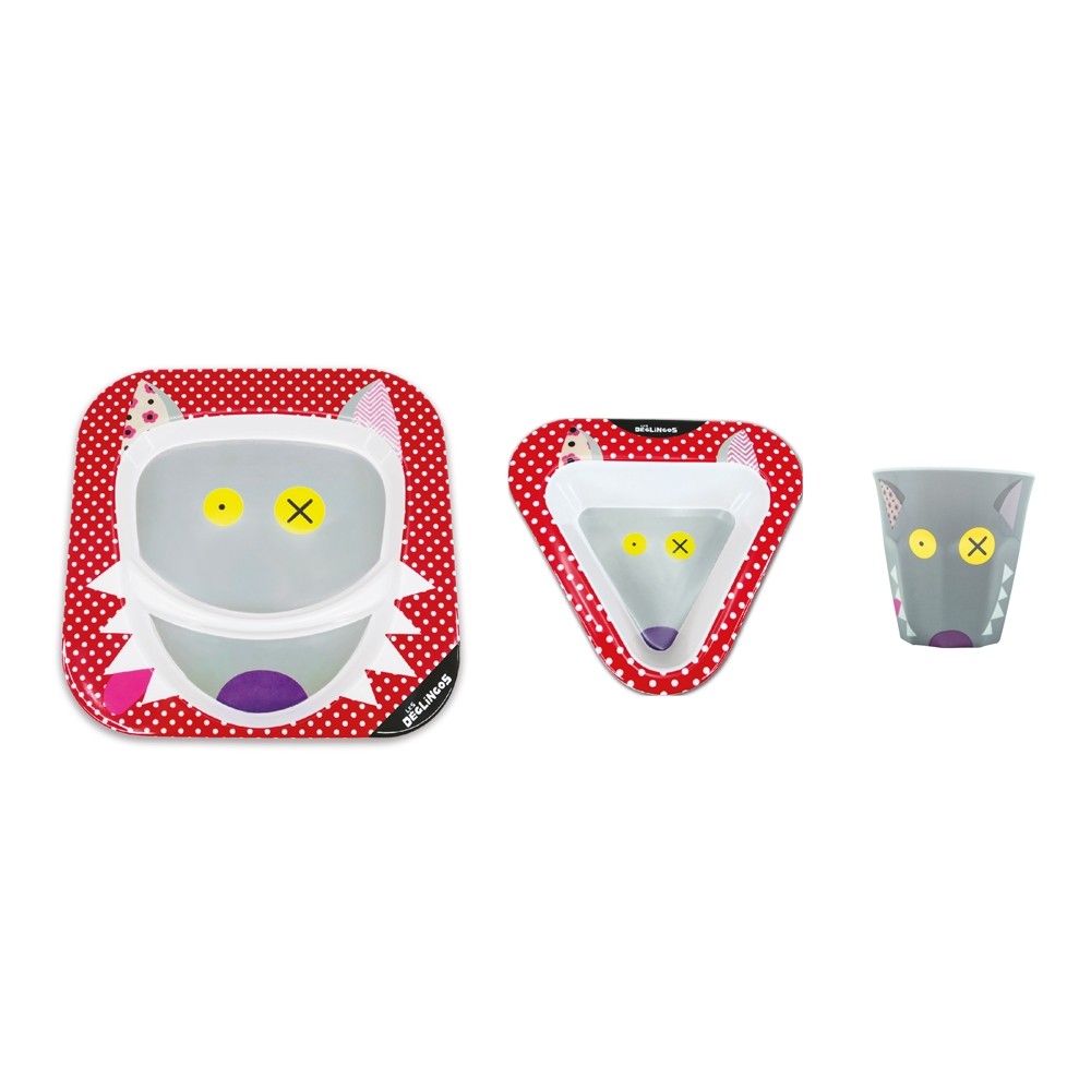 Deglingos Jídelní set vlk BIGBOS šedo červený 3ks