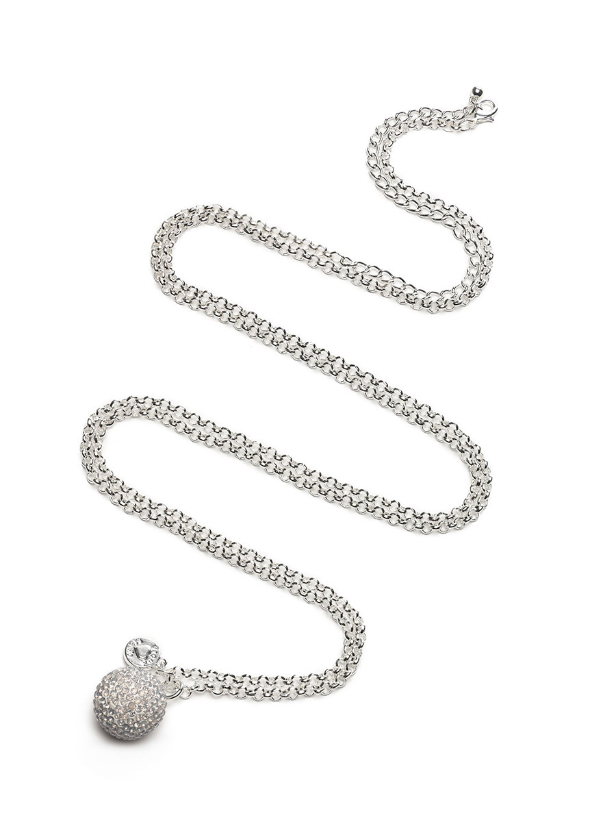 Mexická bola – kulička s kamínky, barva stříbrná, materiál kov, délka 120 cm, váha 15 g.