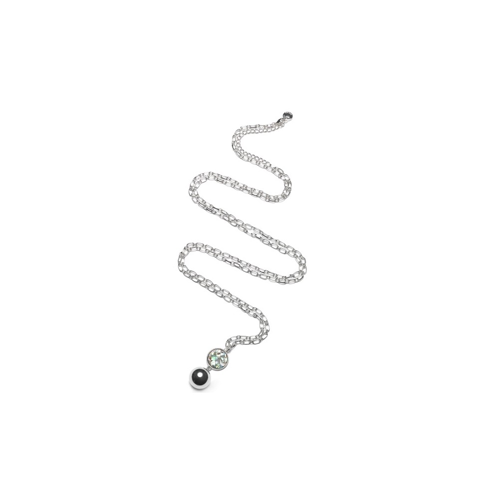 Barva melange/stříbrná, materiál kov/perla, délka 120 cm + 10 cm prodloužení , váha 42 g.