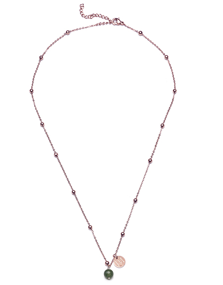 Proud MaMa Řetízek s přívěškem Steel růžové s mechovým achátem v barvě růžového zlata 495