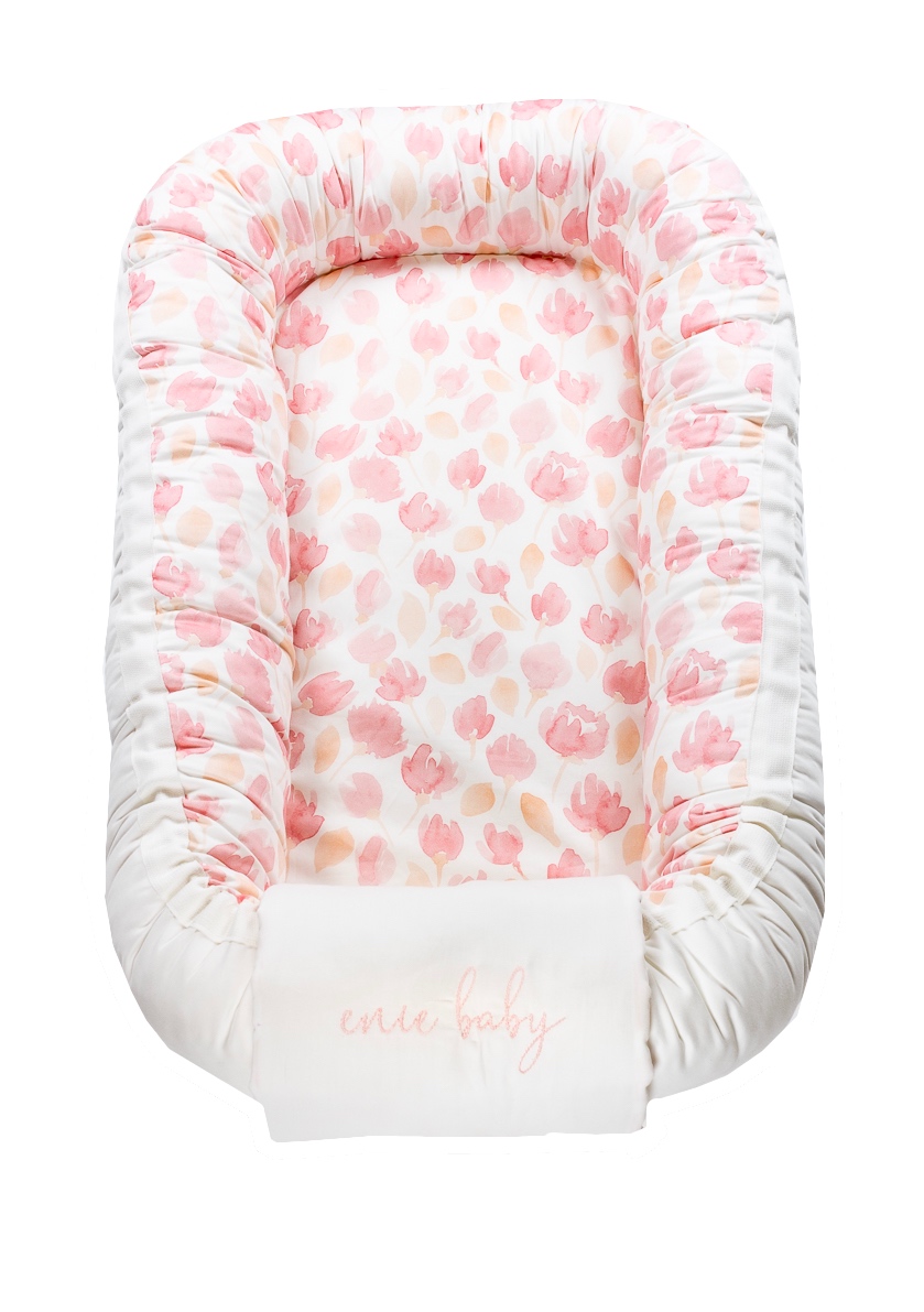 enie baby Hnízdečko do postýlky SATINE pink leaves
